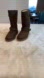 UGG Australia dark brown boot with brass type. UGG tag on the back tag says UGGS/in 100-5374. USA size 5. No odor minimal wear on the inside. I pointed what looks like a marker mark on the inside back of the right boot.