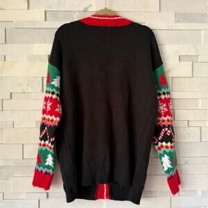 UGLY CHRISTMAS SWEATER NWT Applique Santa Tree CandyCanes Sequin Poms Cardigan S
