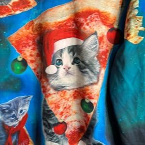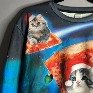 UGLY Cat and Pizza Long Sleeve Christmas Sweater Size Large