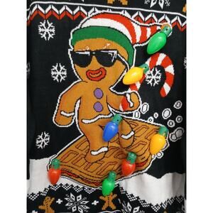 UGLY Gingerbread Christmas Sweater Men's Sz M Black 3D Light Bulbs Office Party