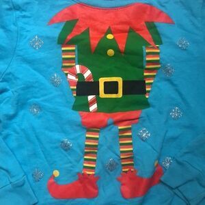 UGLY CHRISTMAS LONG SLEEVE TEE HOLIDAY ELF SIZE L (14)