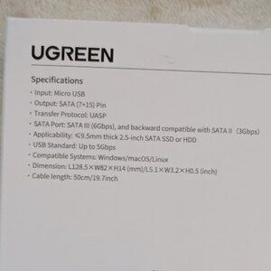 UGREEN 50743 HDD Case 2.5Inch SATA III Hard Drive