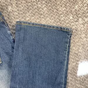 The UGals Jeans Gators 11/12 are a stylish pair of junior women's jeans in a size 11 with a regular fit. Made of a comfortable blend of spandex and cotton, these medium wash jeans feature a flattering mid-rise style with a 31-inch inseam. The classic blue color and flared fit give these jeans a trendy look, perfect for school, university, or sports-themed outfits. With a zip and button closure, 5-pocket design, and machine washable fabric, these Ugals jeans combine fashion and functionality for a versatile wardrobe staple.