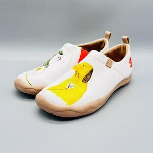 UIN Shoes Womens 5.5 White Canvas Toledo Dog Girl Art Walking Travel Slip On