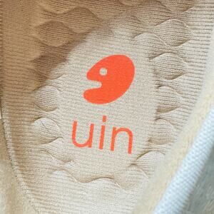 Low-profile slip-on design with stretch side gores, padded textile lining, cushioned insole with UIN logo, rear pull tabs, and textured rubber outsoles molded with Toledo map-style pattern; red UIN logo icons printed on sides and insole.