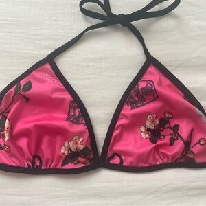 UJENA Bikini swimming top Pink Black Cute! Blossoms, size medium