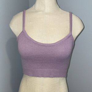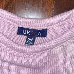 Excellent condition, UK2LA Crop Sweater Top Size S. 100% acrylic machine wash cold. See pictures for length and armpit armpit measurements. Color purple