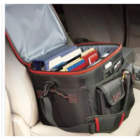Holds a laptop, digital tablet, large binder and more. 4-pocket accordion file keeps paperwork organized.
