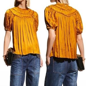 ULLA JOHNSON Aimee Pleated Short-Sleeve Top