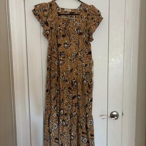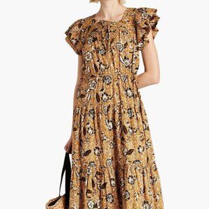 ULLA JOHNSON Amber gathered floral-print cotton-blend midi dress SIZE 4