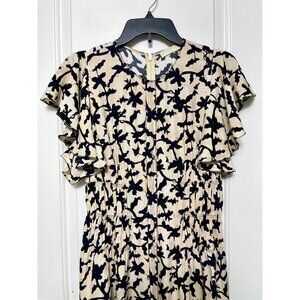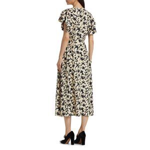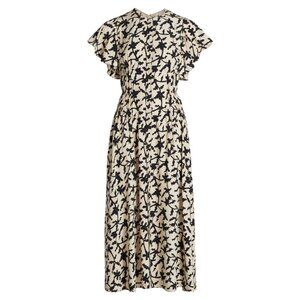 ULLA JOHNSON Anais ruffled printed crepe midi dress in Beige Black 4