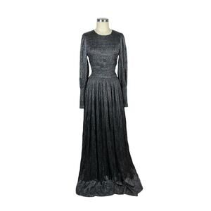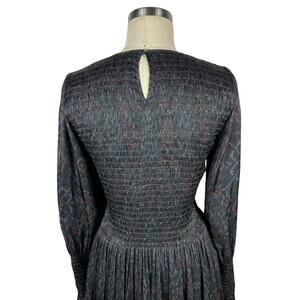 ULLA JOHNSON Antonia Maxi Dress Black Ikat Pattern Smocked Long Sleeve Size 8