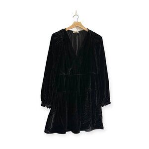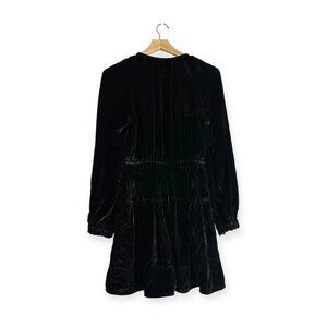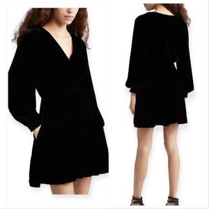 ULLA JOHNSON Audrey Tiered Puff-sleeve Velvet Mini Dress In Noir, Size 4
