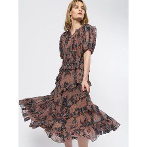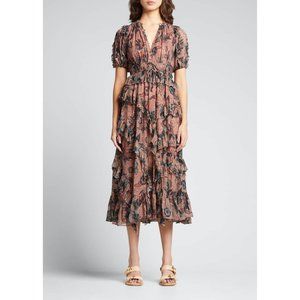 ULLA JOHNSON Cara Short-Sleeve Ruffle Dress