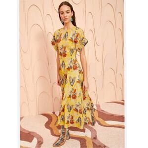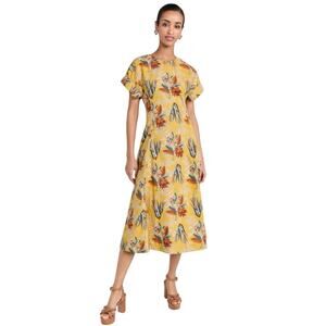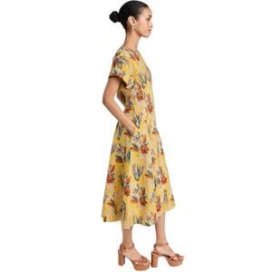 ULLA JOHNSON Devon Cotton Poplin Floral A-line Midi Dress with Pockets