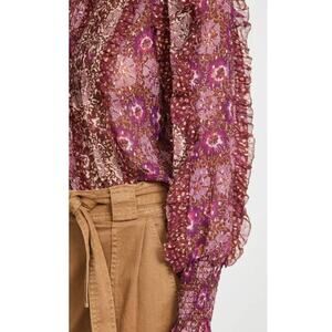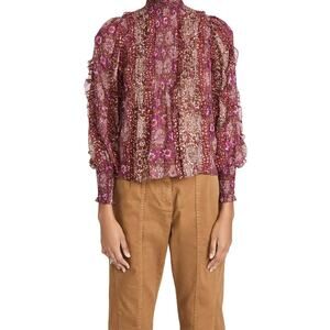 ULLA JOHNSON Elita Ruffle Long Sleeve Blouse Claret Patchwork Size 0 XS Preowned