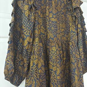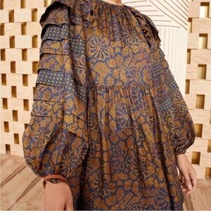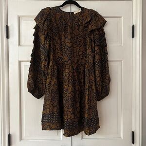 ULLA JOHNSON Emilia Mini Dress Floral Silk Size 6 Long Sleeve Hemlock Printed
