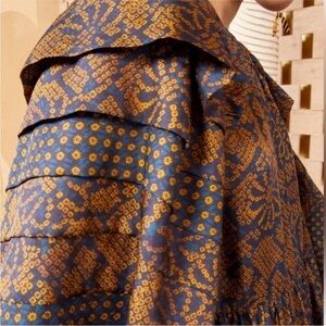 The Emilia Dress is our newest swing-style mini, cut in a graphic printed silk twill fabrication. This eye-catching piece has exaggerated pleats down each sleeve to give extra movement. It's finished with a back neckline closure.