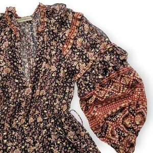 ULLA JOHNSON Erisa Silk Mini Dress Brown Metallic Size 2