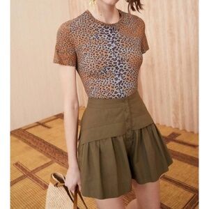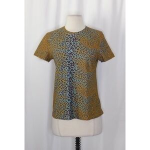 ULLA JOHNSON Estelle Leopard Ocelot Animal Print T-Shirt Top Knit Cotton Small