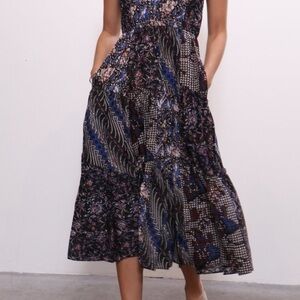 ULLA JOHNSON FLORAL BATIK PATCHWORK MIDI DRESS NWOT SIZE 0 $625