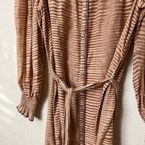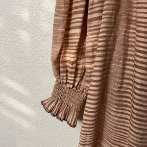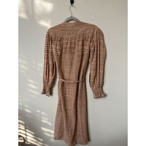 ULLA JOHNSON | Fiora Striped Cotton-Voile Midi Waist Tie Dress in Fawn | Size 2
