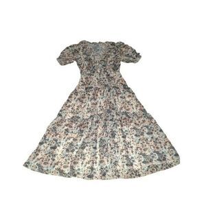 ULLA JOHNSON Gardenia Delphine Floral Tiered Ruffled Dress Side Hidden Zipper Stretchable Waist