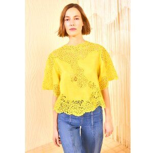 ULLA JOHNSON Kadene Lace Linen Top Size XS/S NEW