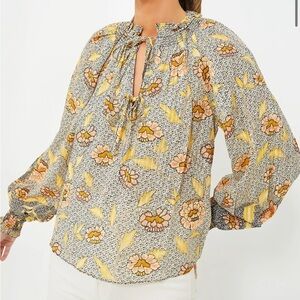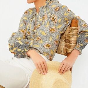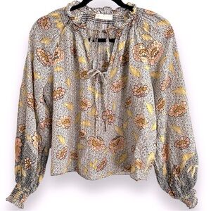 ULLA JOHNSON Kaitlyn Chrysanthemum Tie Neck Blouse Size 0