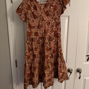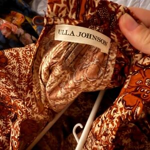 ULLA JOHNSON Kasim gathered floral-print cotton-blend dress, mini dress, smocked neckline, flutter sleeves, perfect condition