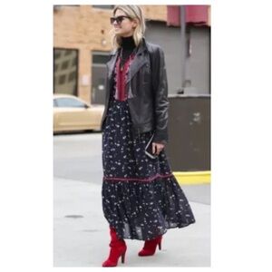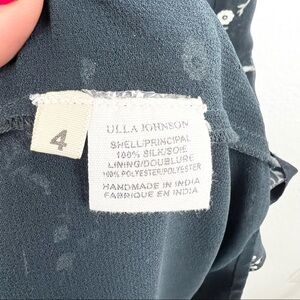 ULLA JOHNSON Leena 100% Silk Embroidered Floral Printed Midi Boho Dress, Black, Size 4