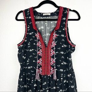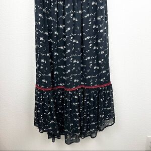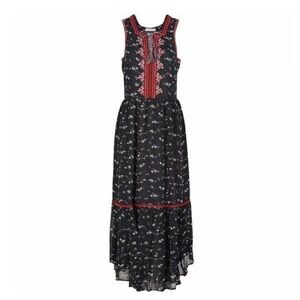 ULLA JOHNSON Leena Silk Embroidered Floral Printed Midi Boho Dress, Black Size 4