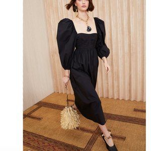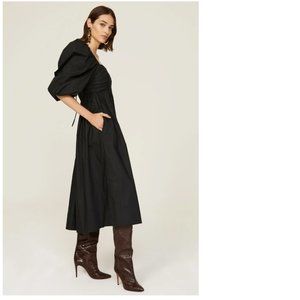 An Ulla Johnson dress, like the Lelani midi dress, can be worn all four seasons to just about an occasion. This one is made from cotton poplin with a square neckline, puffed shoulders, and a full skirt.