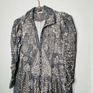 ULLA JOHNSON Lucinda Puff Sleeve Corduroy Button Collared Midi Dress in Size 10 embodies a blend of vintage-inspired charm and contemporary sophistication. Crafted from soft corduroy fabric, this dress exudes a tactile richness that adds depth to its design. The puff sleeves enhance its romantic allure, while the button-up collared neckline lends a touch of classic elegance.