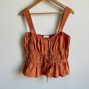 Details: Ulla Johnson Lulu tank; Clay cotton poplin swing-style peplum camisole with adjustable stacked drawstring fastening, wide straps, and light boning on the sides.
