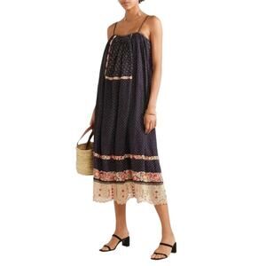 ULLA JOHNSON Nara Folk Embroidered Shibori Patchwork Midi Shift Dress