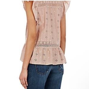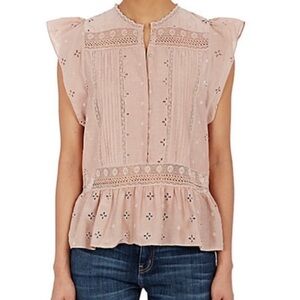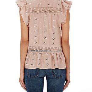 ULLA JOHNSON Oksana Flutter Sleeve Top in Dusty Rose Cotton+Silk Eyelet Blouse 4