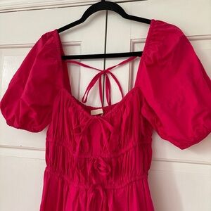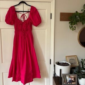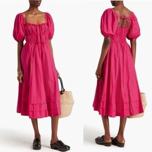 ULLA JOHNSON Palma Midi Dress Hot Pink Orchid Puff Shoulder Size 0 Cotton Poplin
