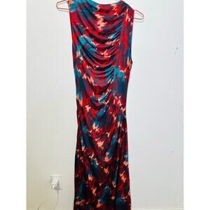 ULLA JOHNSON Red Green Abstract Boat Neck Side Ruched Livia Dress size Medium