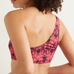 Ulla Johnson 'Reina' bikini swimsuit top featuring one-shoulder styling and a striking, tie-dye inspired print.
