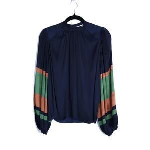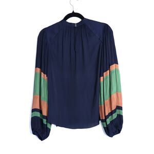 ULLA JOHNSON Rosa Pleated Satin Blouse Midnight Navy Long Sleeve Women's 6