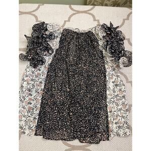 ULLA JOHNSON SILK BLACK & WHITE BLOUSE WITH RUFFLED SLEEVES, Size 2