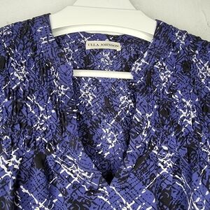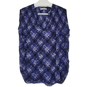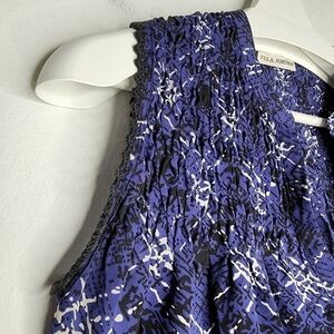 ULLA JOHNSON Silk Pleated Flowy Shell Top Sleeveless V Neck Smock Back Lace Blue