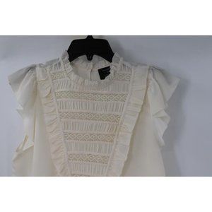 ULLA JOHNSON Top Women 2 Flutter Sleeve Mock Neck Ivory Silk Peplum Blouse
