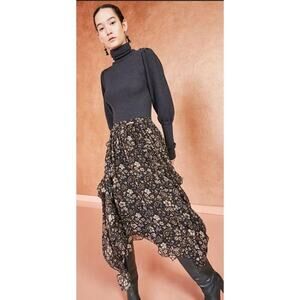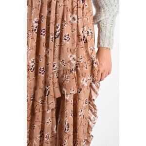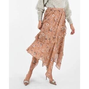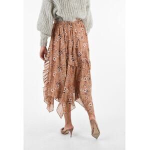 ULLA JOHNSON Torrie Crean Silk Floral Print Asymmetrical Hem Midi Skirt Size 6