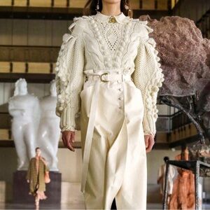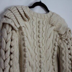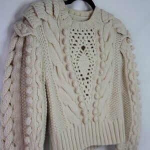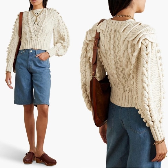 ULLA JOHNSON Verena Cable Knit Pullover Sweater in Ivory