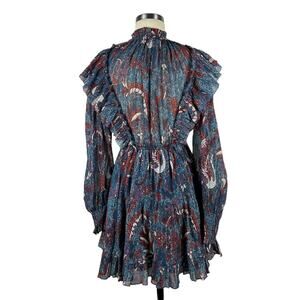 ULLA JOHNSON Vienne Bird Of Paradise Mini Dress Azul Women's 2 Glitter Boho Glam