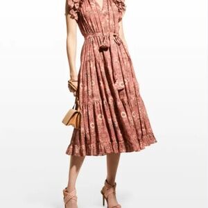 Selling the Virginia Dress by Ulla Johnson. This is the CUTEST dress, I can't tell you how many compliments I received when I wore it. Very flattering fit with elastic waist band. The color is soft, looks gorgeous for all seasons. It's the perfect style midi dress that looks great dressed up with heels, or casual with flats/sneakers. It's so versatile! Size 12 but can fit anywhere from a 6-14 in my opinion. Her dresses are very flattering and flexible fits (In my opinion). This dress has only been worn a few time. Only thing to note is I don't have the waist belt for it. Was $395 new.
