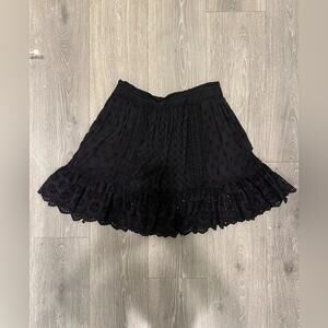 Black Eyelet Scalloped Hem Elastic Mini Skirt