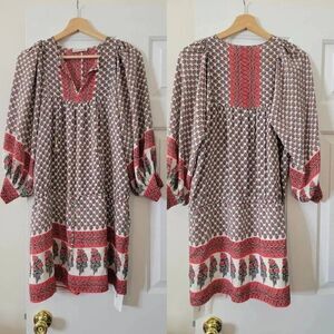 ULLA JOHNSON black white red print silk tunic dress size 0